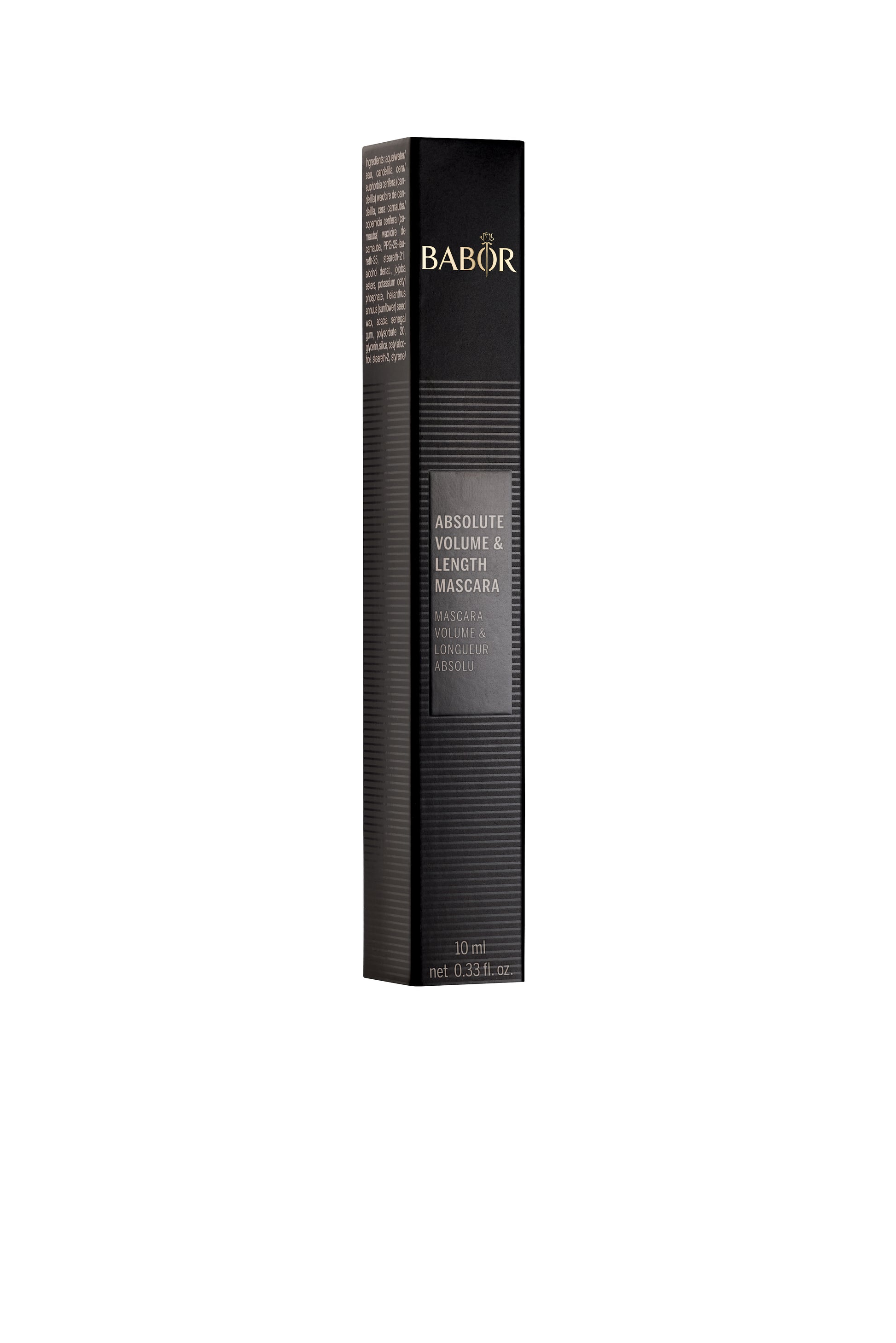 Volume mascara for maximum density, fullness, and length. 10ml.